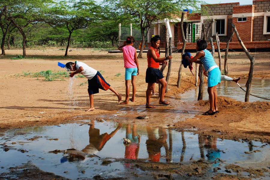| Jovens indígenas colombianos de Pessuapa se banham em julho de 2010 |